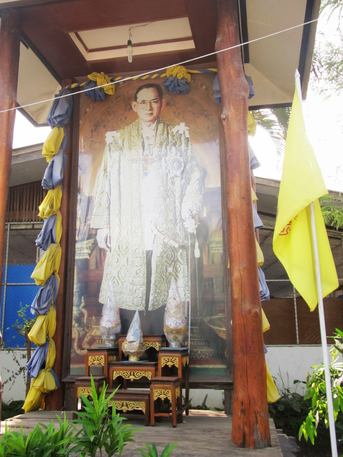This is the king. Everything in Thailand revolves around him. Pictures of him are in schools, homes, hanging from elaborate signs in the streets, etc. Thai people love their king.